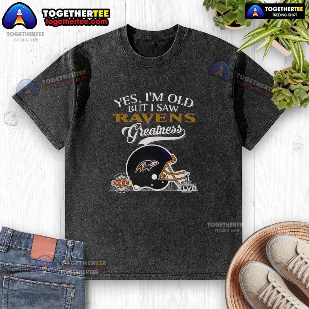 Top Yes I’m Old But I Saw Baltimore Ravens Greatness Super Bowl Helmet Skyline T-Shirt
