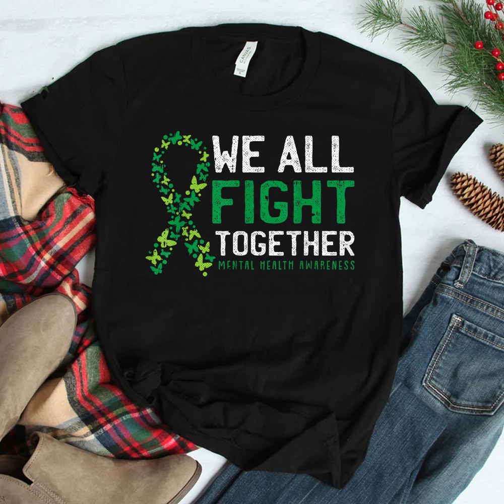 We All Fight Together Mental Health Awareness Green Ribbon Shirt