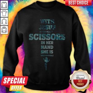 With Jesus In Her Heart And Scissors In Her Hand She Is Unstoppable Shirt