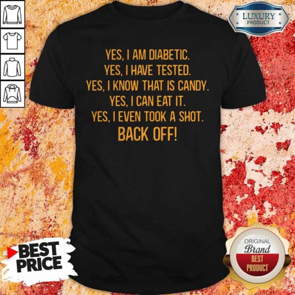 Yes I Am Diabetic Yes I Have Tested Yes I Know That Is Candy Yes I Can Eat It Yes I Even Tool A Shot Back Off Shirt