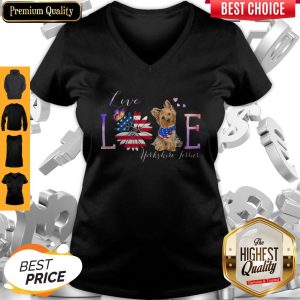 Yorkshire Terrier Live Love Paw Sunflower American Flag Veteran Independence Day Shirt